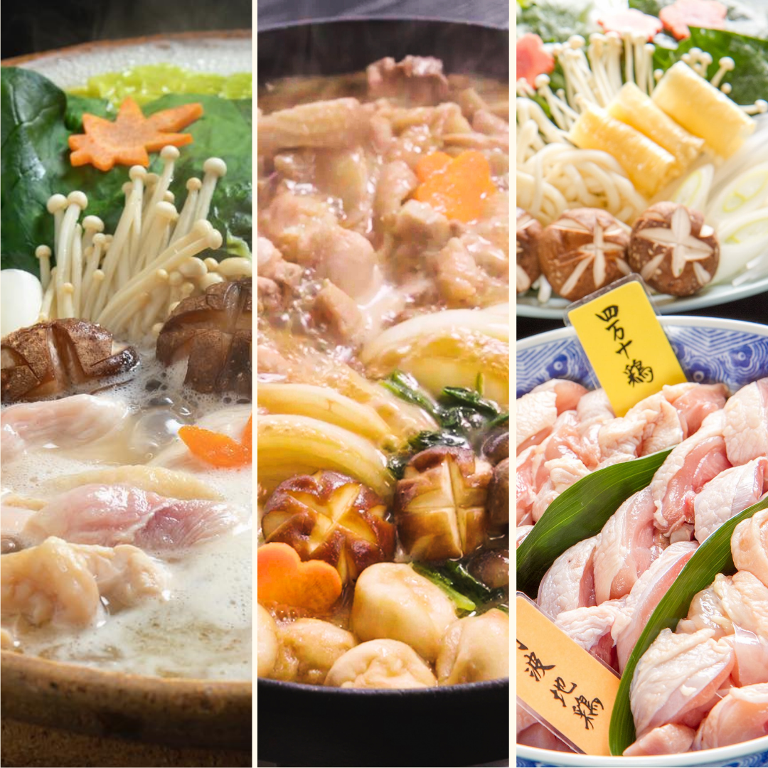 3. あじわい鶏鍋:3種の鶏(オリジナル熟成鶏・丹波地鶏・四万十鶏)の食べ比べ鍋